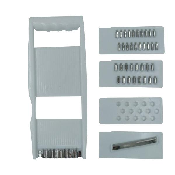 این رنده ۴کاره قادر است اشکال مختلفی به هویج و پیاز و خیار و... دهد و به سالاد های شما دیزاینی خاص می بخشد. ویژگی های محصول: ••ابعاد:26x11x3 سانتی‌متر••وزن:100 گرم ••جنس دسته:پلاستیک••جنس بدنه:پلاستیک با خرید این رنده مطمئن باشید برای یکی از مهم ترین ابزارهای اشپزخانه،بهترین انتخاب را داشته اید. با کمک این رنده می توانید به راحتی در انواع مدل مواد غذایی را خورد و حاضر کنید . با تیغه ورقه کن میتوانید سیب زمینی های یکدستی تهیه کنید و به زیبا ترین شکل غذای دلخواهتان را حاضر کنید. بسیار مقاوم و کاربردی ، ضروری در تمامی آشپزخانه ها می باشد. همچنین این رنده بسیار خوش دست است.