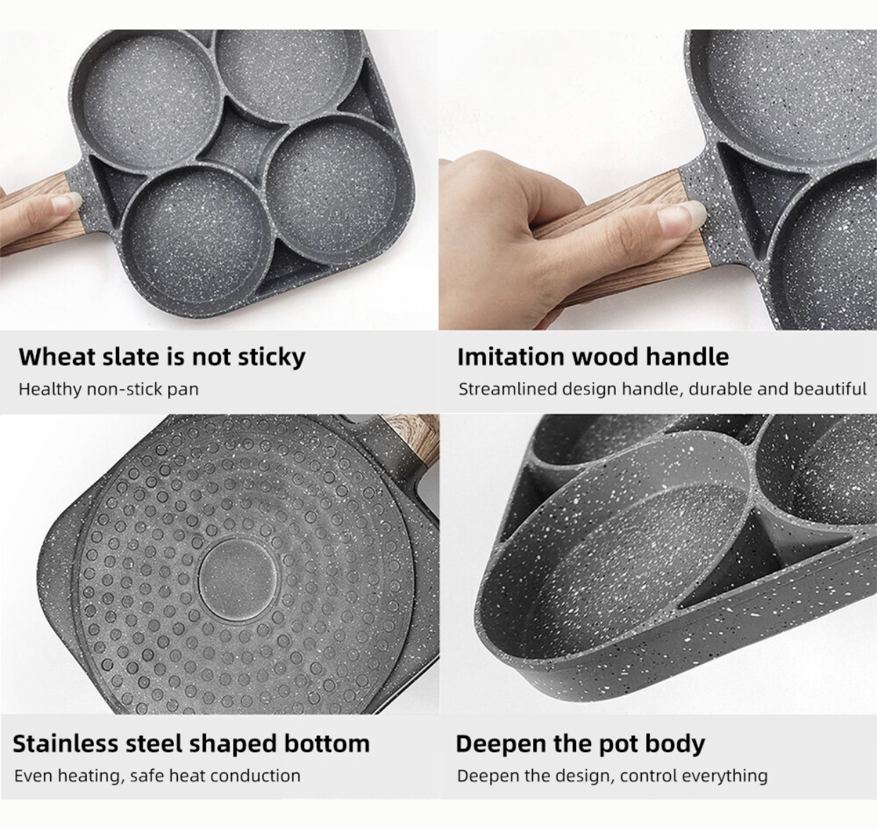 اما نکته اینجاست که غذاهای زیبا و خوش طعم با ظروف معمولی حاضر نمیشوند یا طرز تهیه آن بسیار سخت تر از حالت نرمال میشود.این تابه گرانیت ۴ تکه دقیقا یکی از ظروف منحصربه فردی است میتواند به شما در تهیه غذاهای هیجان انگیز و جذاب مثل همبر تخم مرغ،پنکیک،املت،نیمرو،استیکو ژامبون کمک کند.